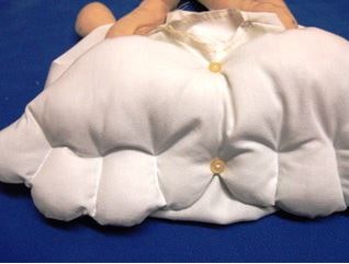 Now, back to the praying hands of your Chubby Angel doll... Tack them together once more at the palms of her hands to bring them together in more of a praying pose. You can include a halo for your Chubby Angel, buttons, ribbons or anything else that you like.