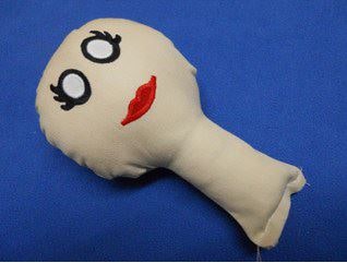 Stuff the head with Polyfil and baste the opening closed by hand or machine.